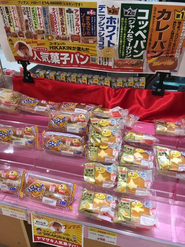 ヒカキンが数日前にアップした動画で、ヤマザキのパンを食べただけのやつを受けたスーパーの特設コーナー。"案件"なので超ウメーウメーとか言ってるし、パンのほうにはヒカキンおすすめのステッカーまで付いてるんだけど、これのために動いた大人の数、カネ…
