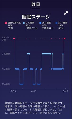 fitbit inspire2という活動量計を風呂のとき以外はほぼずっと着けている。Apple watchは家では着けないので詳細な心拍や歩数、睡眠の記録が取れている。 1年間はプレミアム会員が無料らしいのでその機能として睡眠の詳細分析があるらしい。これは睡眠時間の…